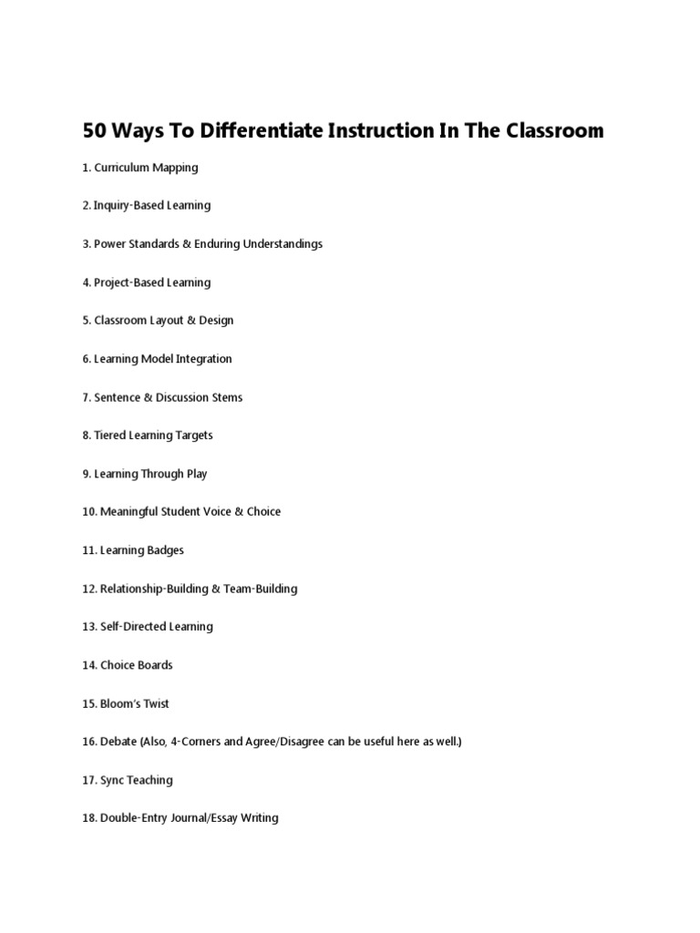 50 Ways To Differentiate Instruction in The Classroom PDF