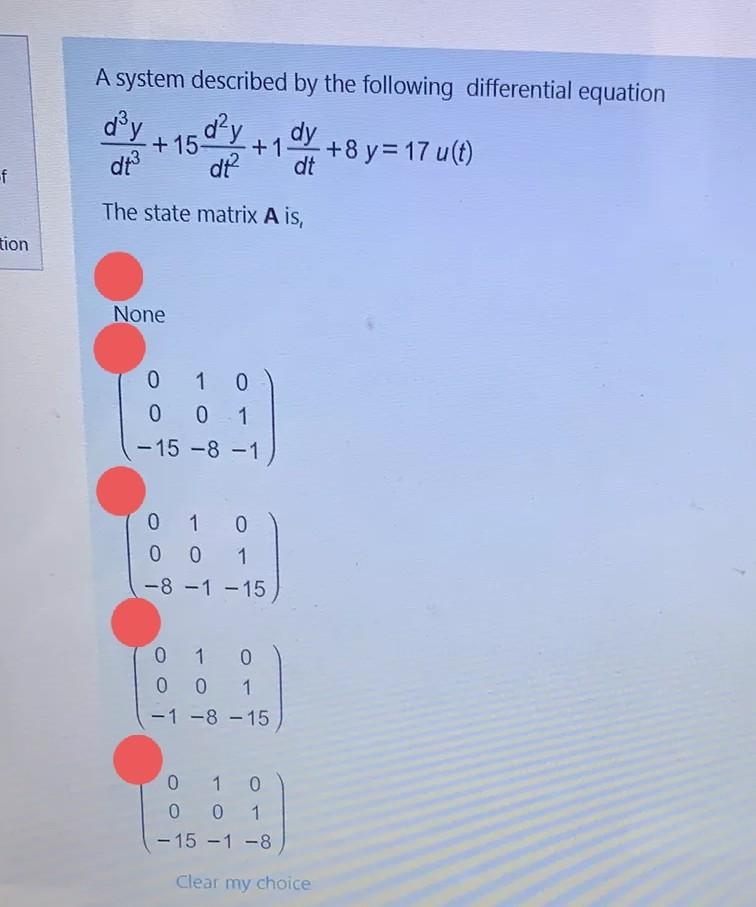 Differential equation related to y, the numberator is the differential equation related to x. A system is described by the differential equation \(\frac{{{d^2}y\left( t.