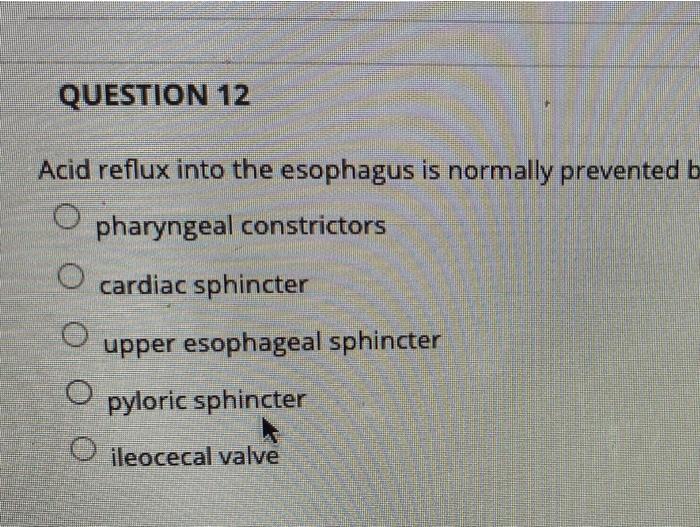 Solved QUESTION 12 Acid reflux into the esophagus is
