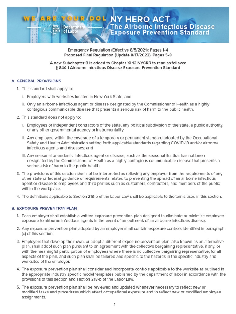 NY Hero Act The Airborne Infectious Disease Exposure Prevention
