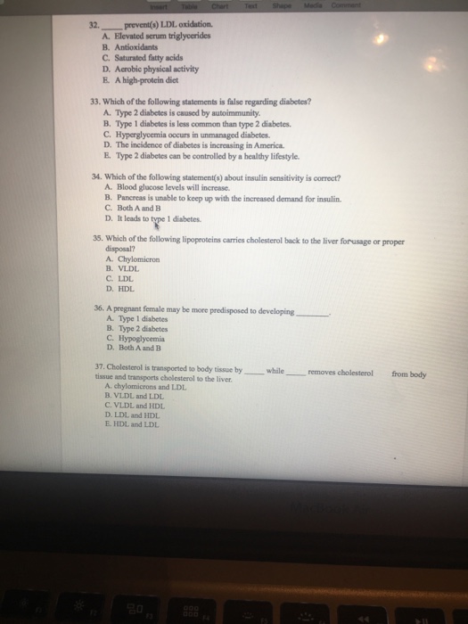 Solved 32. prevent(s) LDL oxidation A. Elevated serum