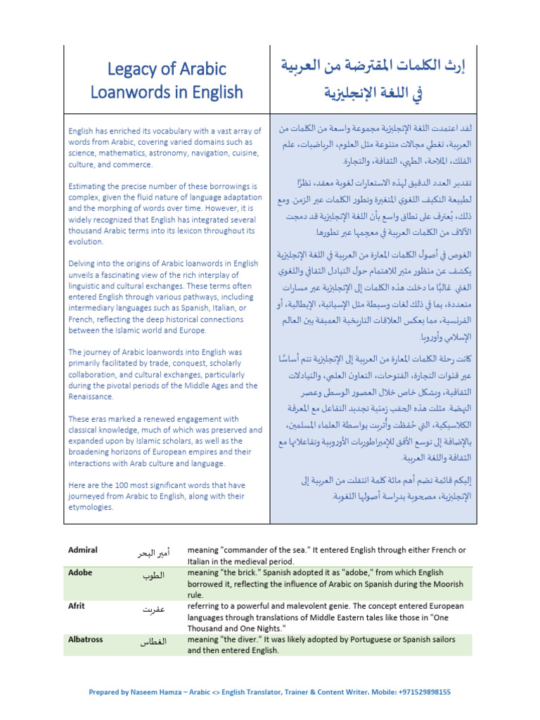 With this in mind, we decided to look at arabic loan words in english. There are numerous arabic loanwords in english, i.e., words of english acquired. If you’re as interested in. Here’s a list of some of the common words that the arabic language has. The arabic word was most probably borrowed from greek praikokion itself borrowed.