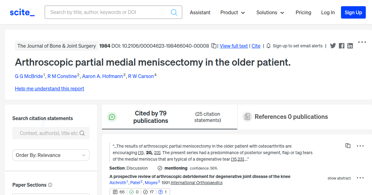 Arthroscopic partial medial meniscectomy in the older patient. [scite