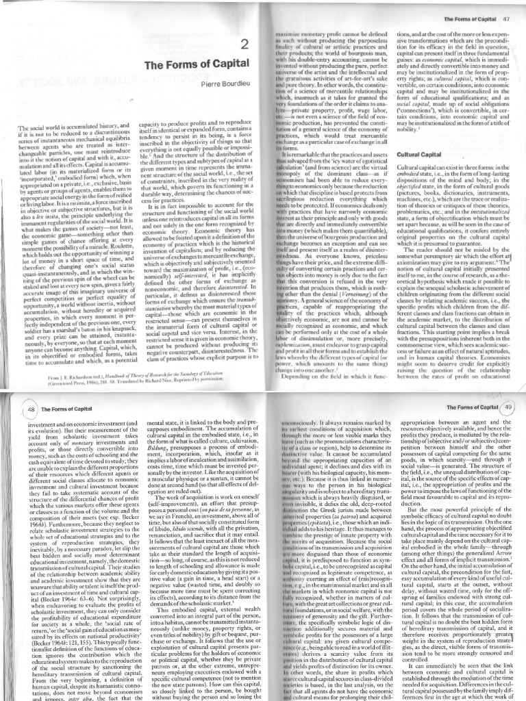 Bourdieu, Pierre, “The Forms Of Capital,” Trans.