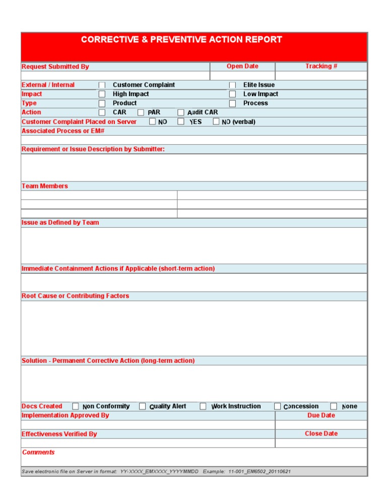 This corrective and preventive action example shows you what a corrective and preventive.