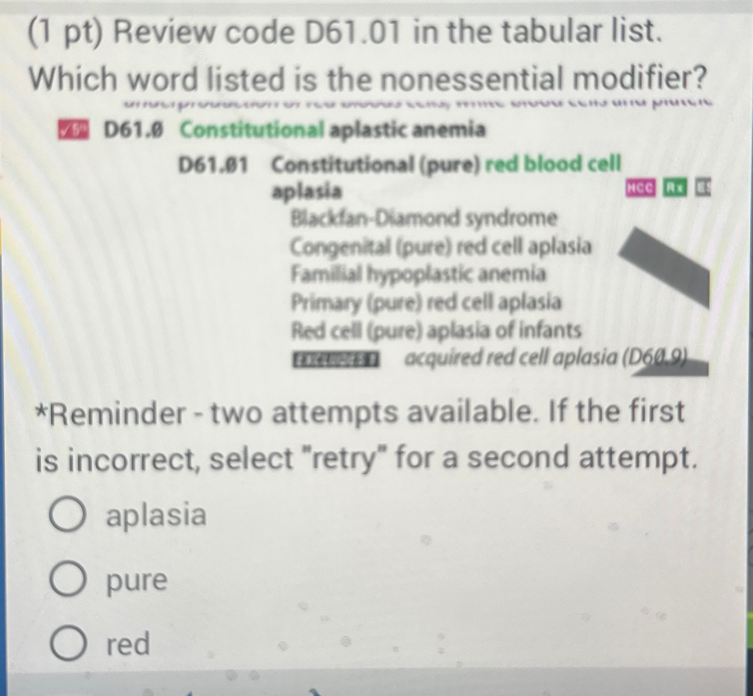 Solved (1 pt) Review code D61.01 in the tabular