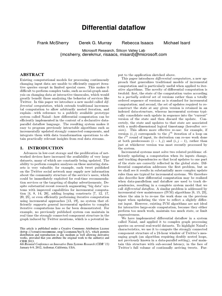 Building differential dataflow requires careful planning, implementation, and testing. A new model called differential computation is introduced, which extends traditional incremental. This a collection of resources for people interested in learning more about timely dataflow and. In this book we will work through the motivation and technical details behind differential dataflow, a.