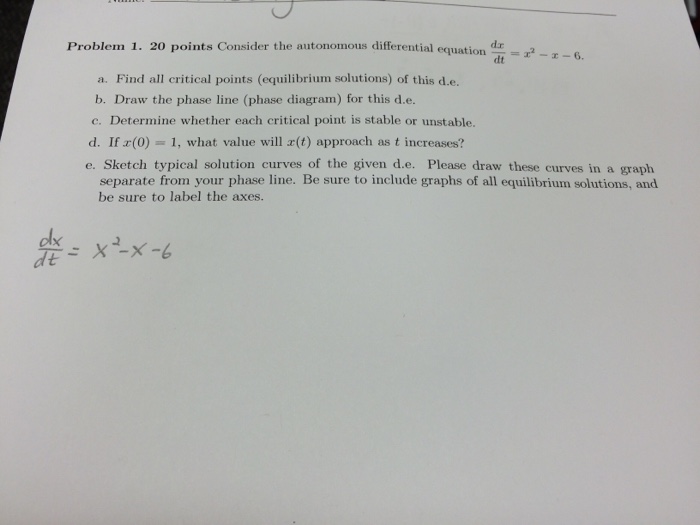 [Solved] Problem 2. (10 points) An autonomous differential equation has