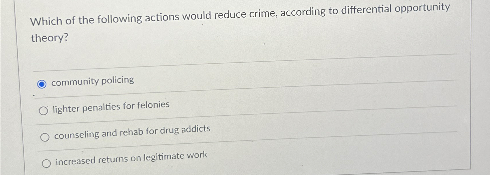 Solved Which of the following actions would reduce crime,