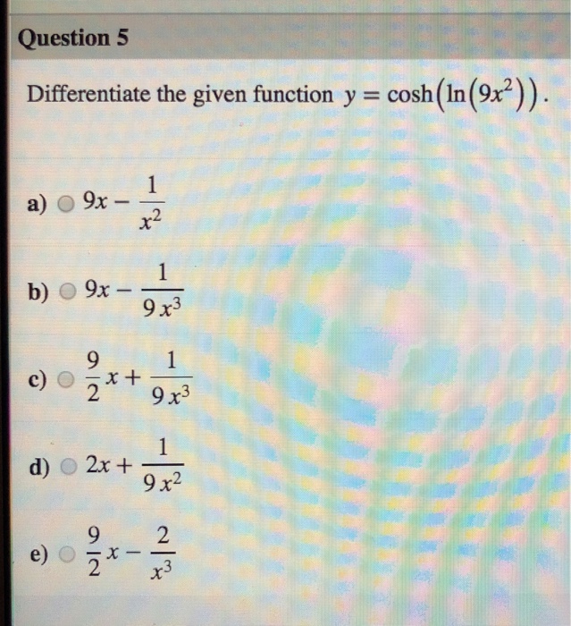 Solved 2 (cosh(2 x) 4) Question 5 Differentiate the given