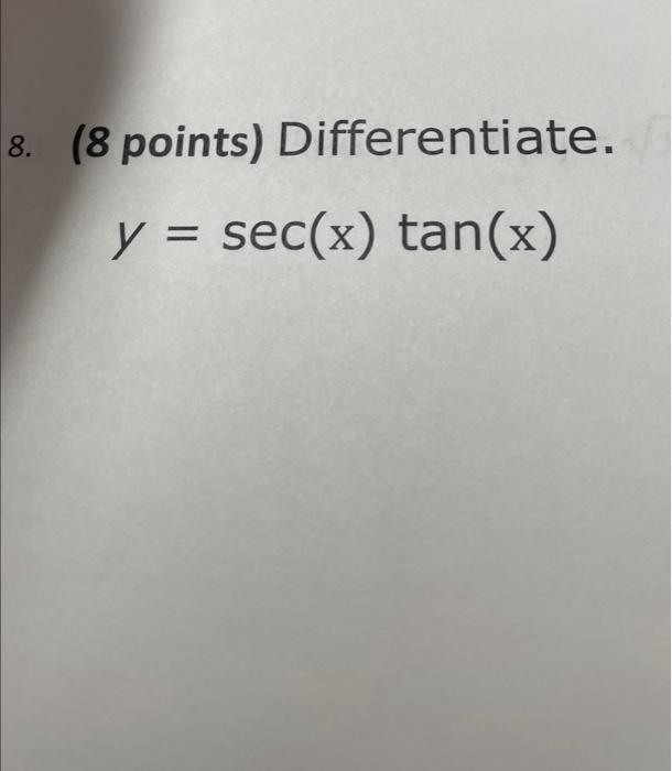 Solved 8. (8 points) Differentiate. y=sec(x)tan(x)