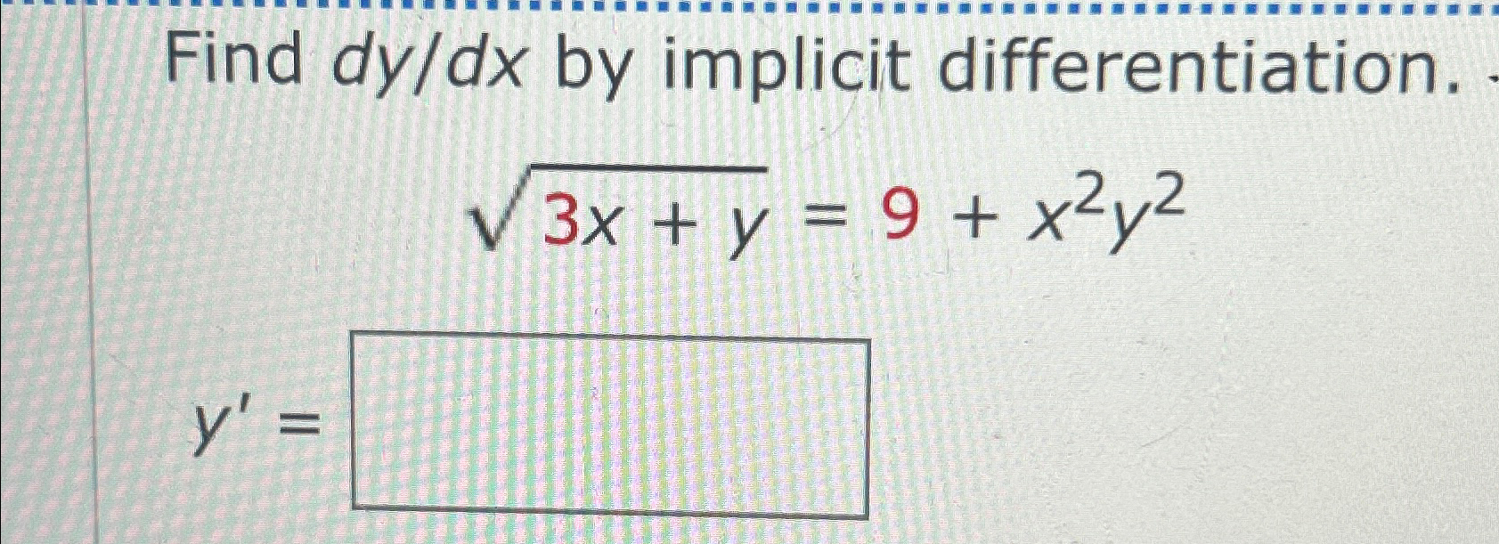 Solved Find dy(d)x by implicit