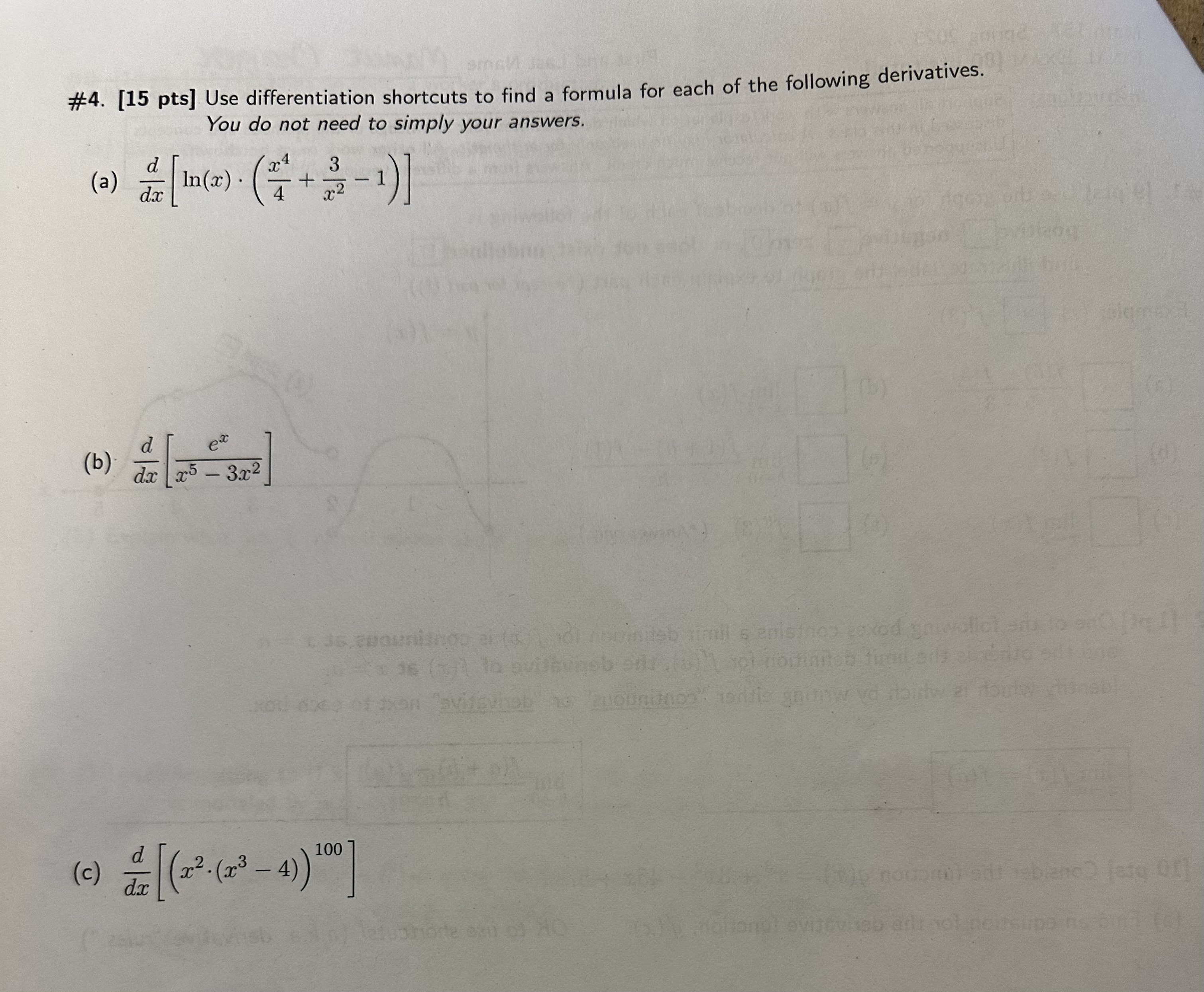 Solved \4. [15 pts] Use differentiation shortcuts to find a