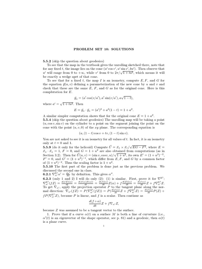 hw10 (Do Carmo p.260 Q1 Sol) PDF PDF Curvature Differential