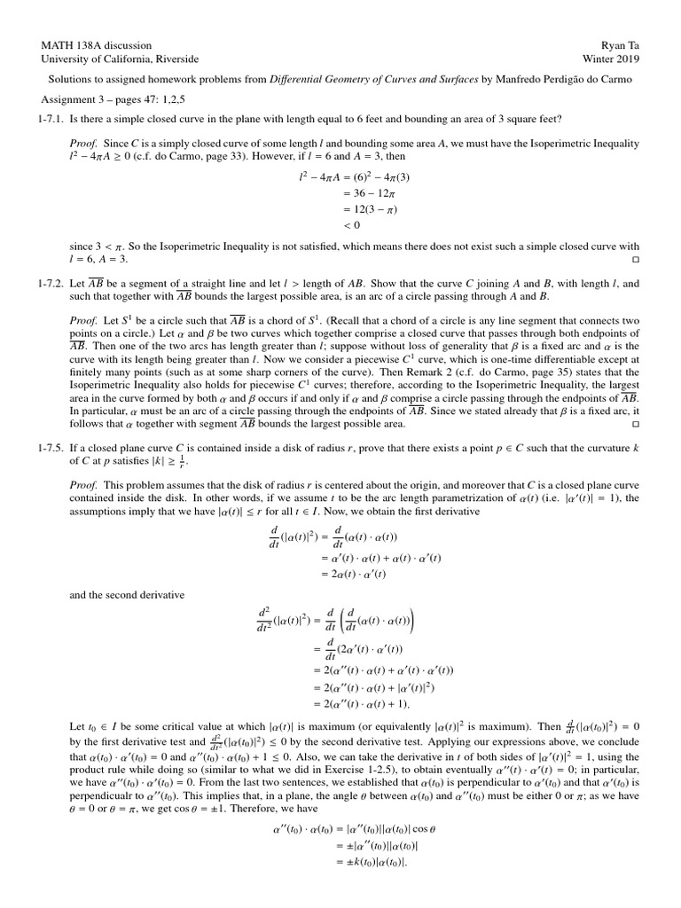 You signed out in another tab or window. It is a theorem (page 114 of do carmo) that a surface s r3 is of form s= f 1 (0) for some smooth f: Reload to refresh your session. Differential geometry of curves and surfaces. V !r having 0 is a regular value if and only if. Reload to refresh your session. You signed in with another tab or window. Do carmo september 20, 2016 xi preface this book is an introduction to the differential geometry of curves and surfaces,. A good part of the study of rie. These notes summarize the key points in the first chapter of differential geometry of curves and surfaces by manfredo p.