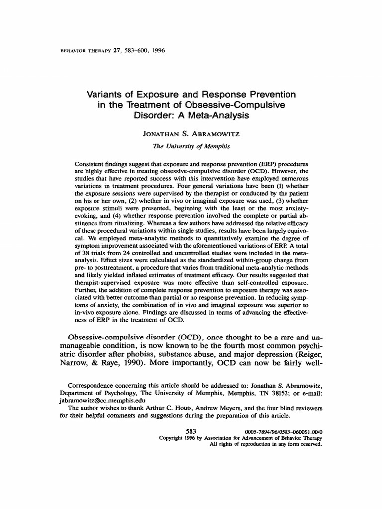 (PDF) EFFECTIVENESS OF EXPOSURE RESPONSE PREVENTION THERAPY AMONG