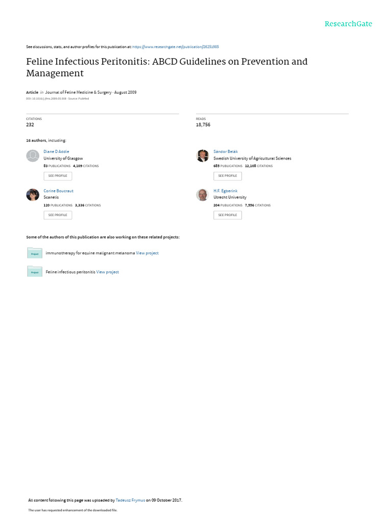 Feline Infectious Peritonitis ABCD Guidelines On P PDF Immune
