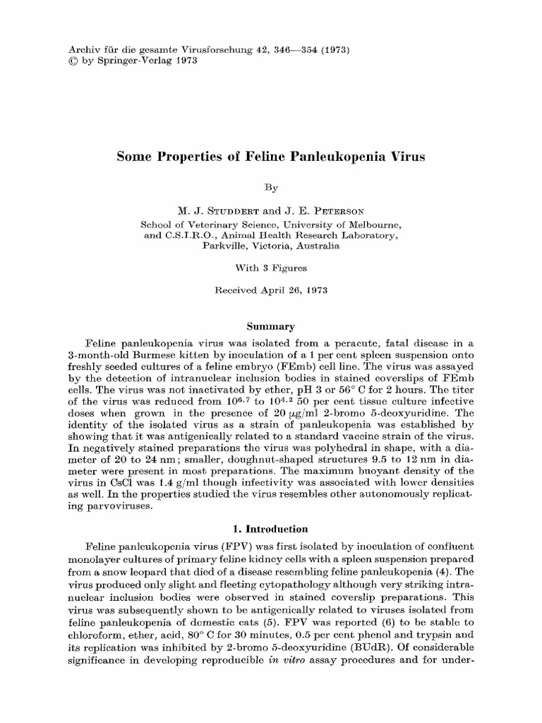 Some Properties of Feline Panleukopenia Virus Download Free PDF