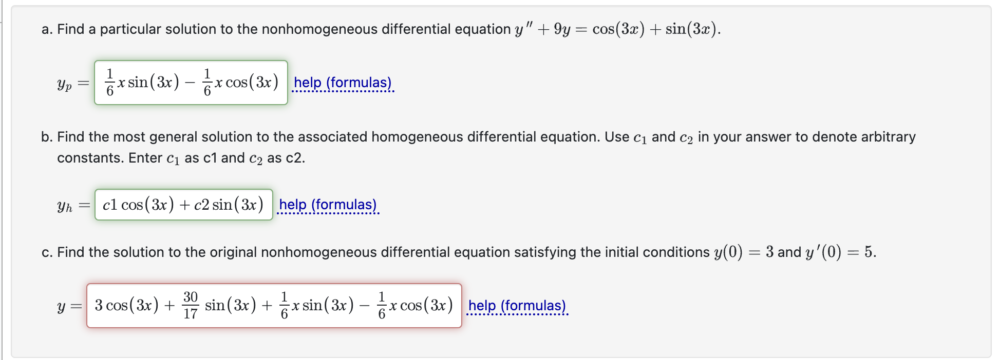 In this section we will discuss the basics of solving nonhomogeneous differential equations. Use c1 and c2 in your answer to denote arbitrary constants. It works by dividing the forcing function into simpler components, finding a particular solution for each component, and then adding those. In this section we introduce the method of variation of parameters to find particular solutions.
