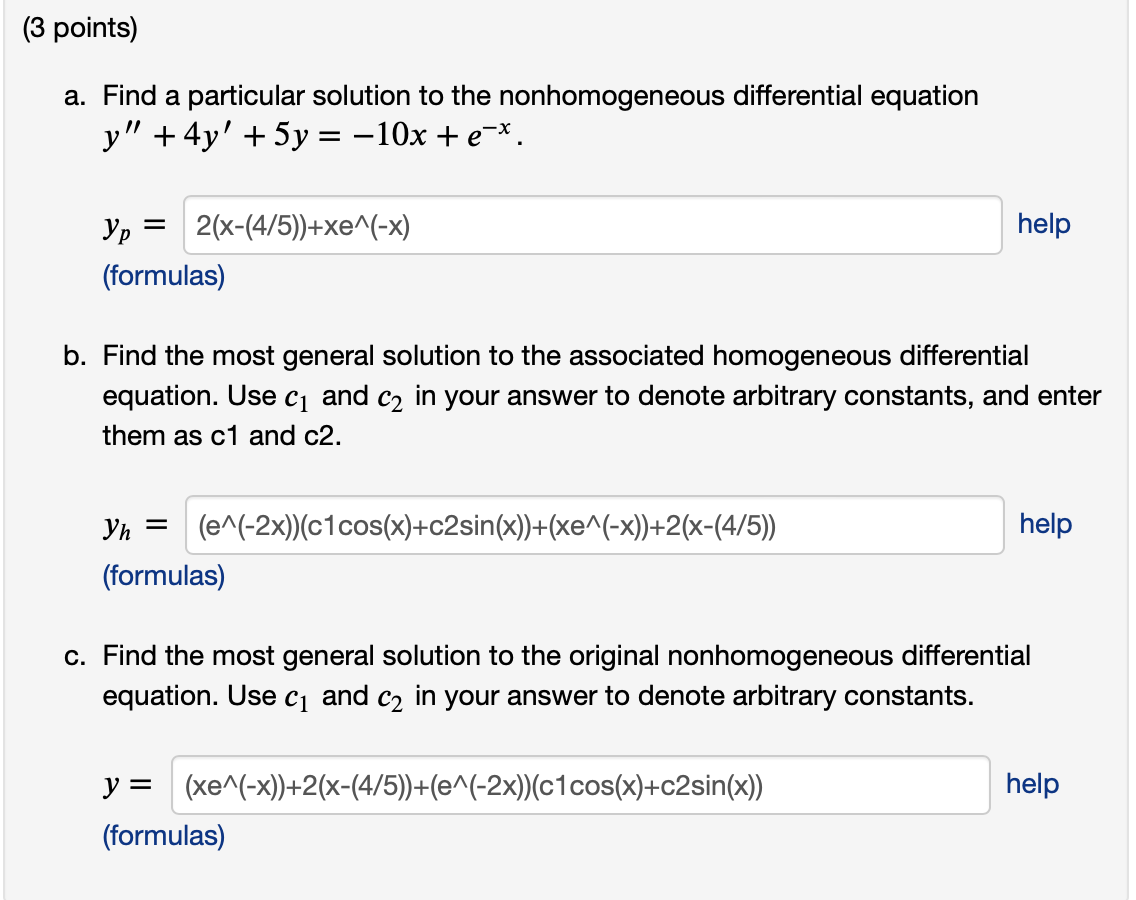 Use c1 and c2 in your answer to denote arbitrary constants. In this section we will discuss the basics of solving nonhomogeneous differential equations. The two most common methods when finding the particular. In this section we introduce the method of undetermined coefficients to find particular solutions to nonhomogeneous. It works by dividing the forcing function into simpler components, finding.