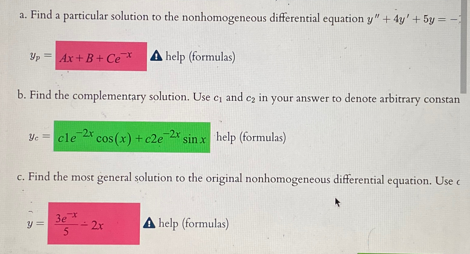 Solved a. Find a particular solution to the nonhomogeneous