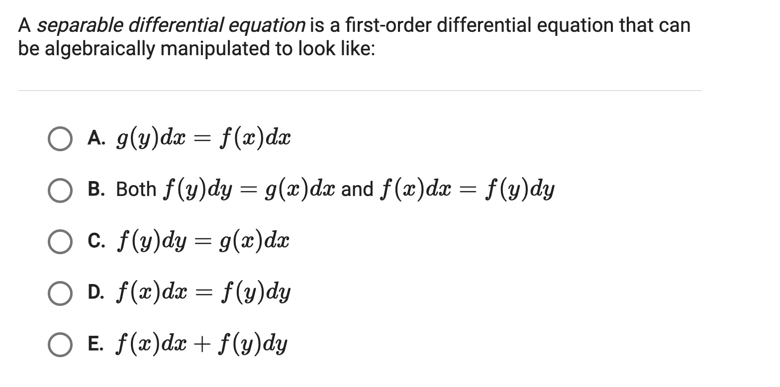 Solved A separable differential equation is a firstorder