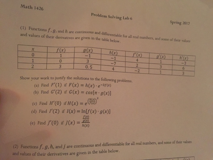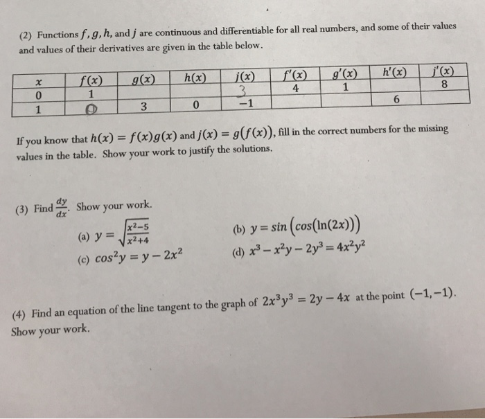 Functions f,g,h and j are continuous and differentiable for all real numbers, and some of their values and values of their derivatives are. The function f, g, h and j is continuous and differentiates for all real numbers. The derivative must exist at each point in the domain of the function. If a function is differentiable on an. H (x).