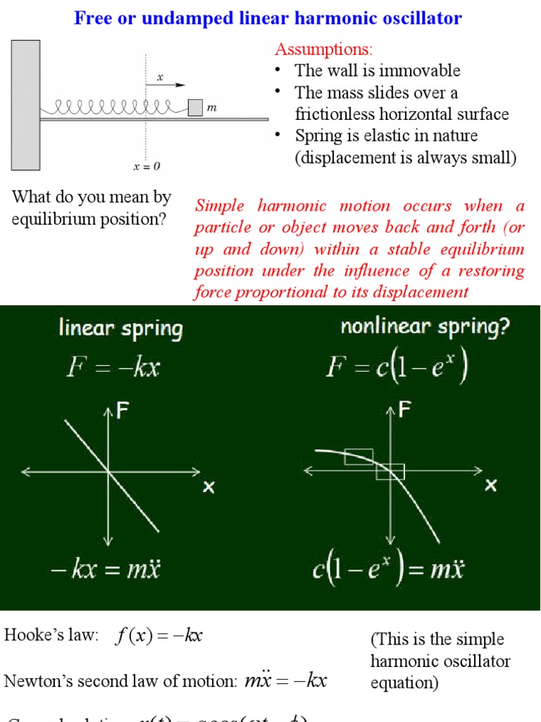 In order for x(t) to satisfy the diferential equation for all times t, we must have: The harmonic oscillator, which we are about to study, has close analogs in many other fields; Solving the simple harmonic oscillator 1. Because the spring force depends on the. Although we start with a mechanical example of.