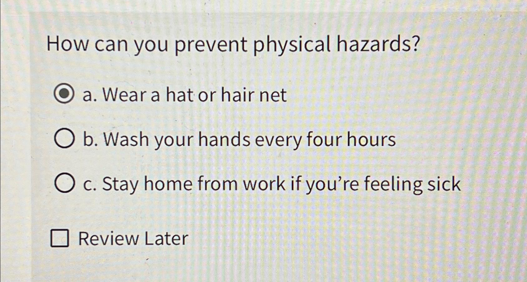 Solved How can you prevent physical hazards?a. Wear a hat
