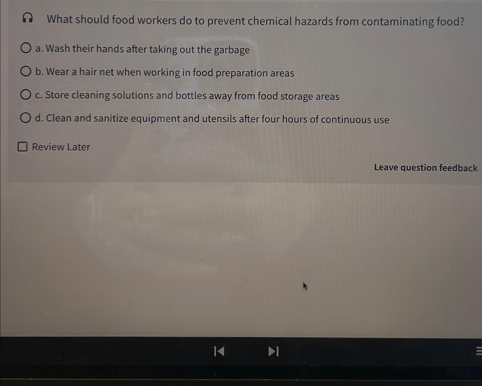 Solved A What should food workers do to prevent chemical