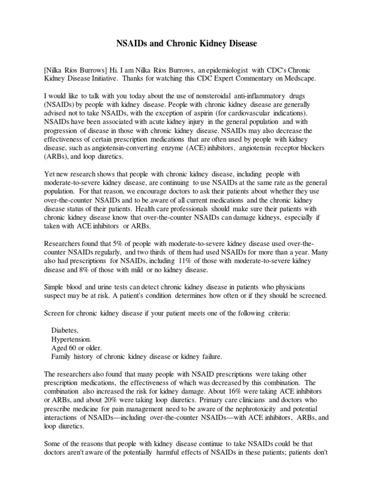 Kidney Disease Chronic Kidney Disease and NSAIDs