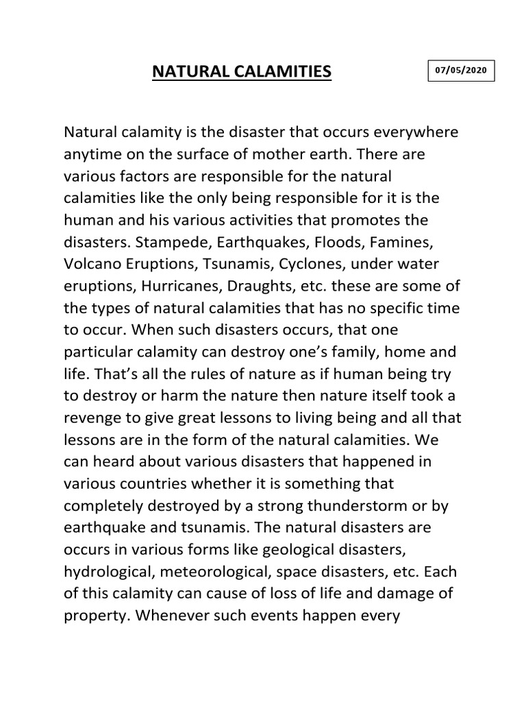 Natural Calamities PDF Natural Disasters Volcano