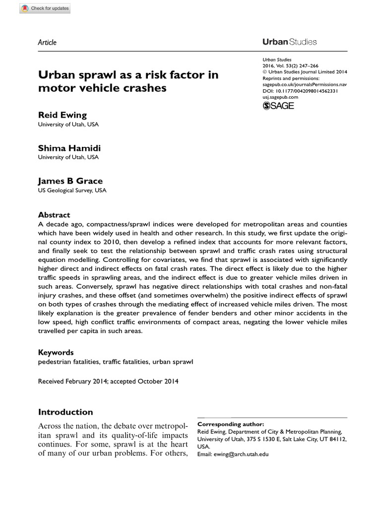Urban Sprawl As A Risk Factor in Motor Vehicle Crash PDF Urban