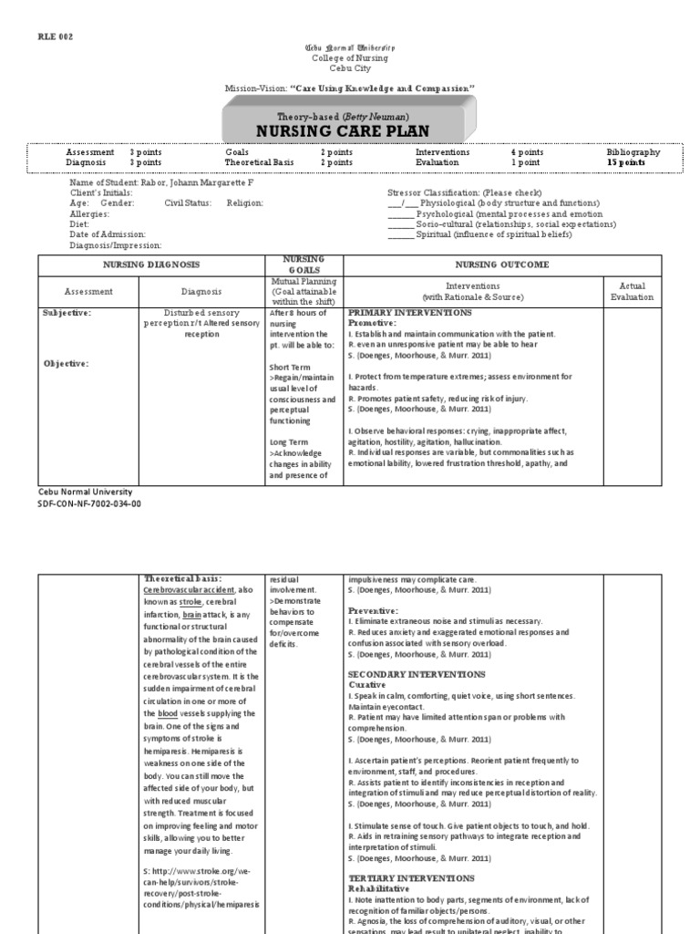 NURSING CARE PLAN SensoryPerception Disturbance Nursing Home Care