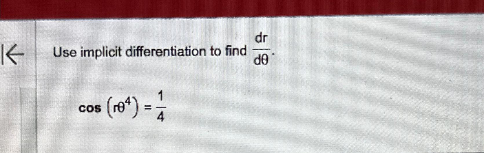 Solved Use implicit differentiation to find drdθ.cos(rθ4)=14