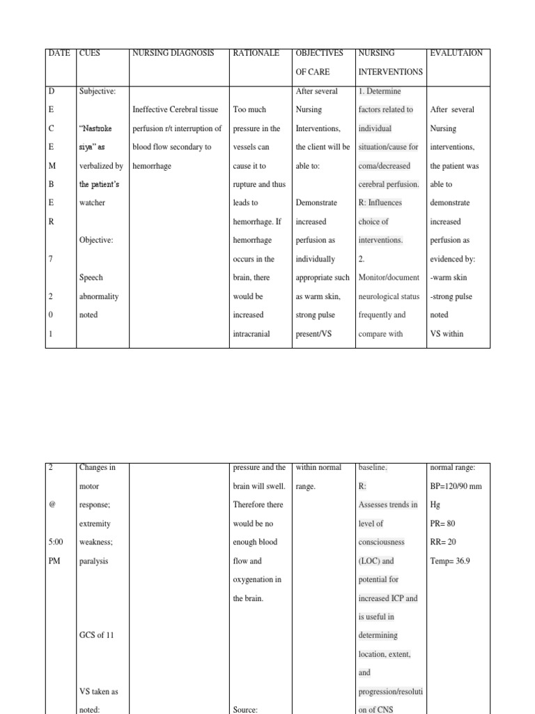 Ineffective Cerebral Tissue Perfusion Nursing Care Plan 6 1 Putting