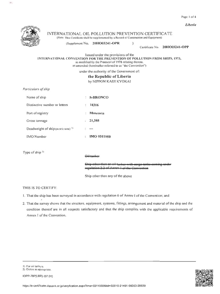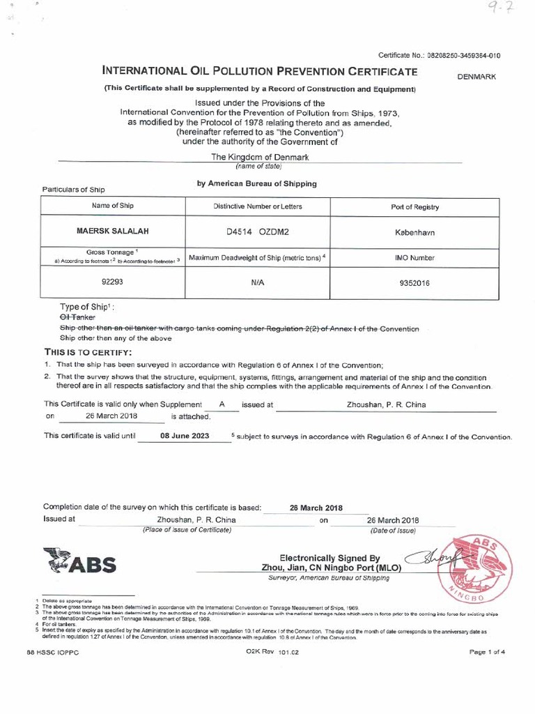 02 International Oil Pollution Prevention Certificate With Supplement PDF