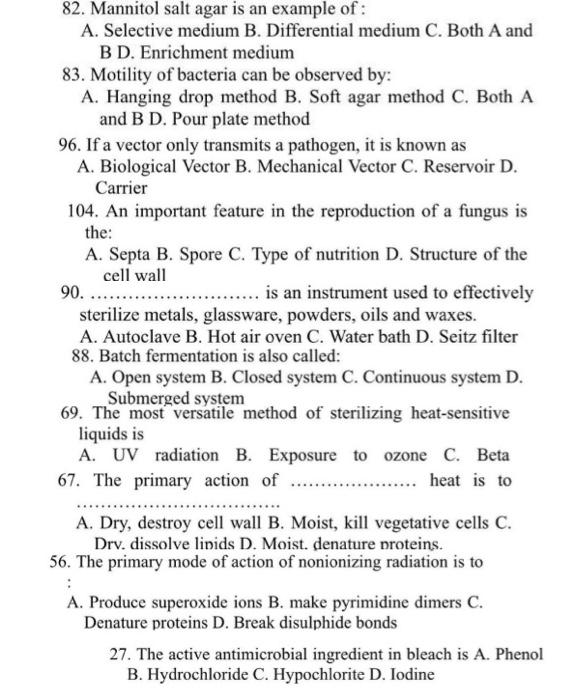 Solved Online worksheet questions 78 Mannitol Salt Agar