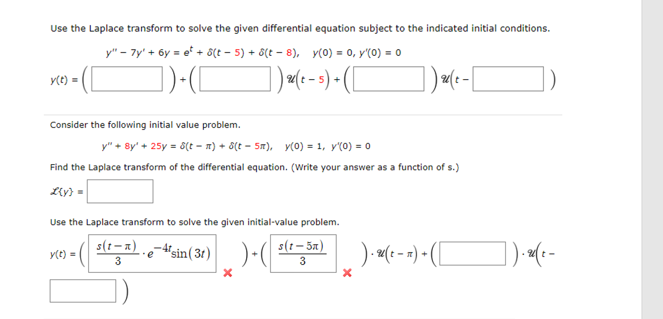[Solved] Solve for y(t) by Laplace transform with the 2nd Translation