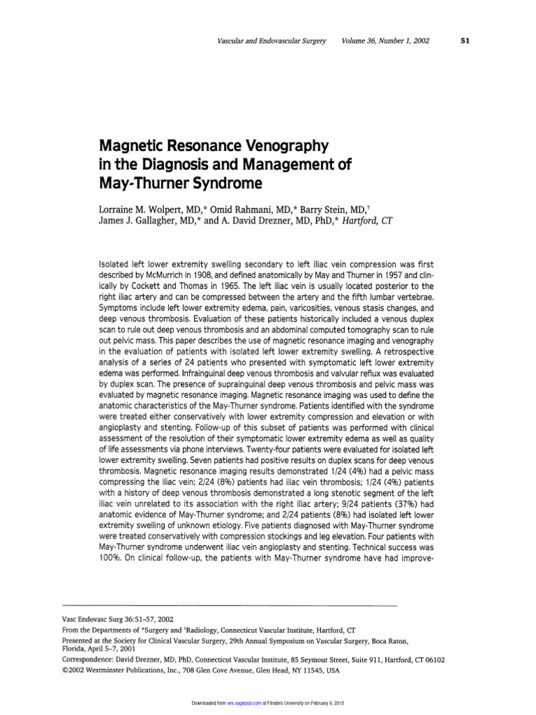 Can MayThurner Syndrome Be Cured? Hamilton Vascular