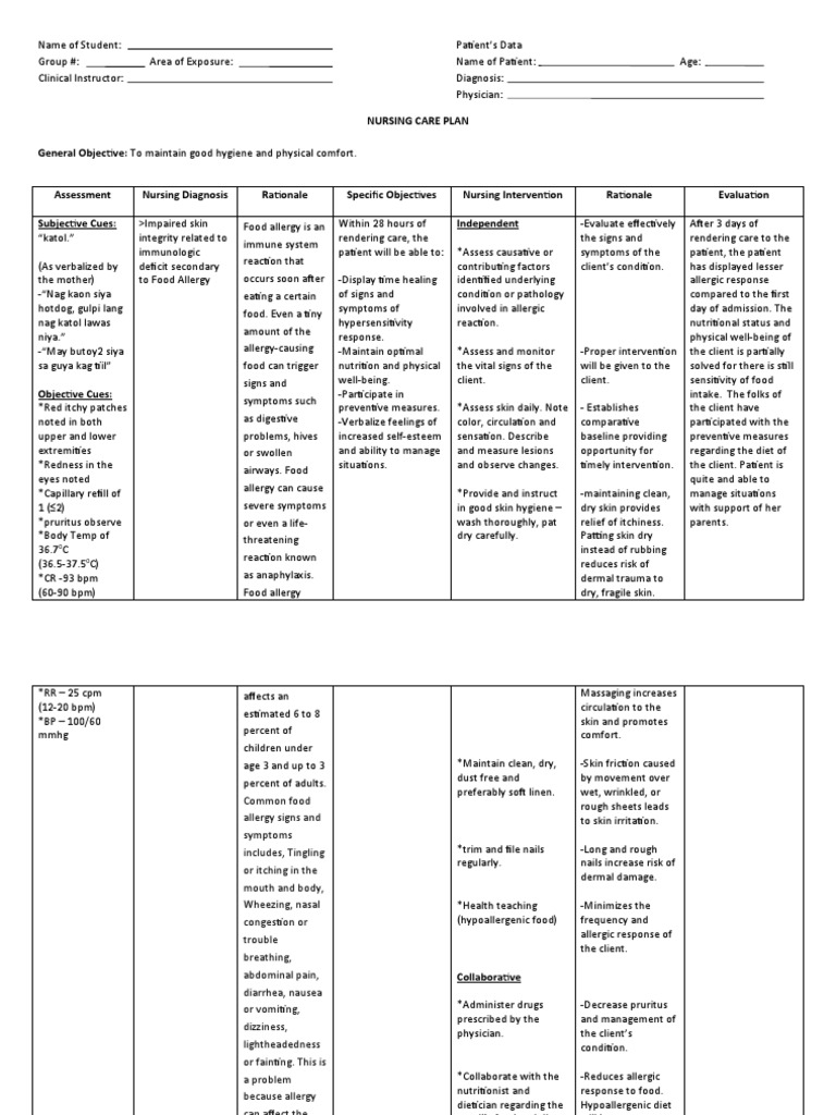 CHN Nursing Care Plan Allergic Response ASSESSMENT NURSING DIAGNOSIS