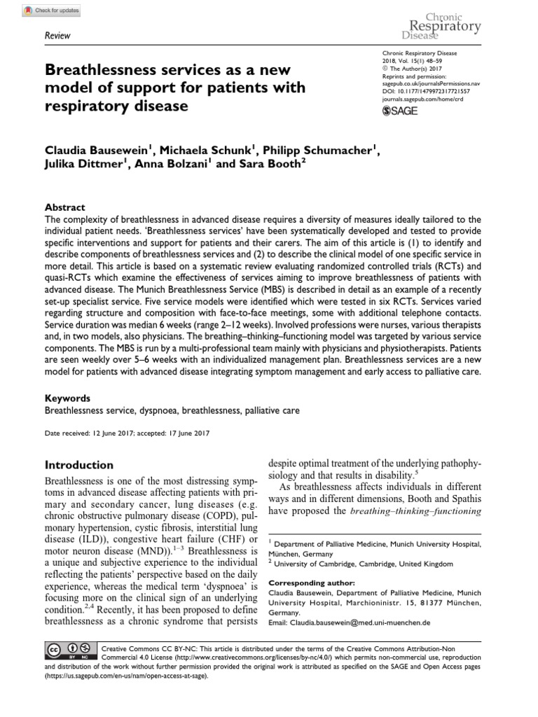 Breathlessness Services As A New Model of Support For Patients With