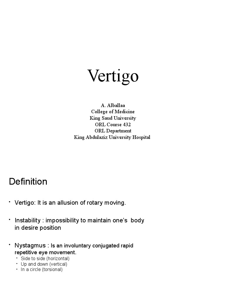 (PDF) Diagnosis and Treatment of Vertigo and Dizziness