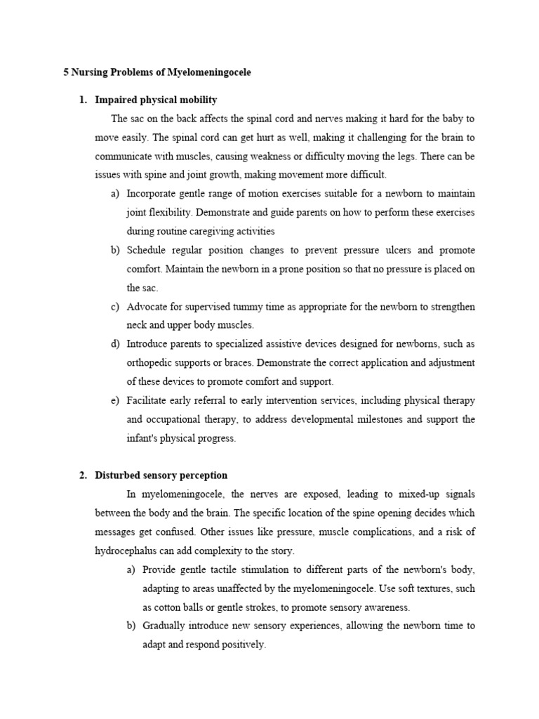 5 Nursing Problems of Myelomeningocele PDF Infection Wound