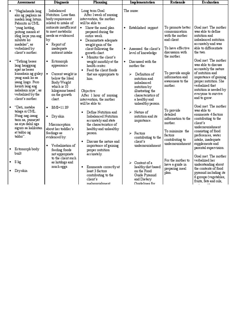Nursing Care Plan For Imbalanced Nutrition Less Than Body Req NCP PDF