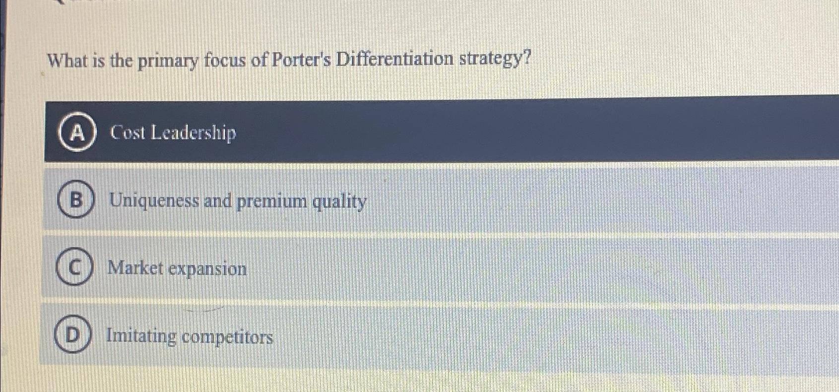 Solved What is the primary focus of Porter's Differentiation