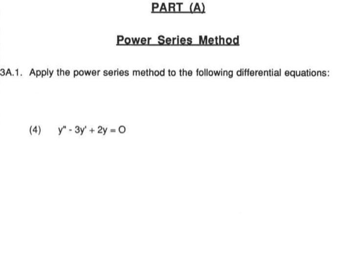 Solved PART (A) Power Series Method 30.1. Apply the power