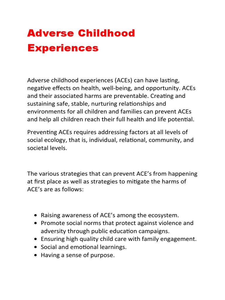 In 2023, cdc launched a funded program focused on preventing adverse childhood experiences (aces) and promoting positive. Adverse childhood experiences (aces) and their associated harms are preventable.