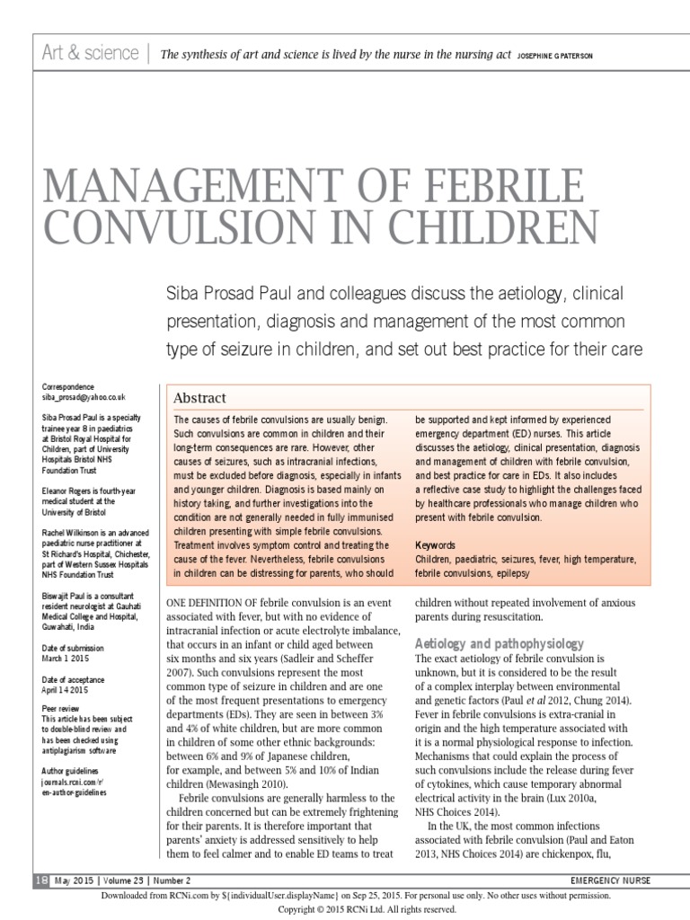 Management of Febrile Convulsion in Children PDF Fever Epilepsy