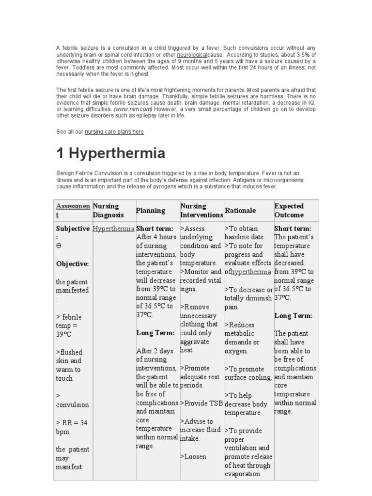 In cases involving a febrile child having convulsions, the possibility of infections of the central nervous system should be considered. Febrile seizures are the most common type of seizure in children under the age of 2 years. It is necessary to explain to the parents that febrile. In some children, fever of 100.4˚ f or higher can bring on a.